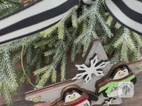 Our handmade wood star ornament with 2 adorable scarved penguins is perfect to represent any couple, friends, roommates, grandkids or children. Each ornament features the wood layered penguins, glittery snowflakes and ribbon seen here. Please indicate the names you would like personalized on the penguins (and if you have a preference for which name goes with which color scarf).