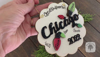 Our festive Chicago Christmas ornament can be personalized on the light bulbs and/or white ornament base. A detailed handmade wood Christmas in Chicago 2024 Souvenir or gift for a Chicago resident.