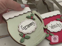 Our festive wood cocoa cup ornament gives us all the warm fuzzies this holiday season! Choose a red or sage green mug and be sure to include what you would like hand personalized on the white scallop in the center. A cute handmade Christmas gift for anyone on your list!