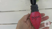 Christmas Light Bulb Ornament - Personalized Wooden Lightbulb Decoration in Red, Pink, Blue or Green