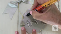 This engagement ornament is hung with gold colored wire and topped with a bow; hand glittered touches make this engaged gift a special ornament to add to a Christmas Tree or top off a gift for the new couple!