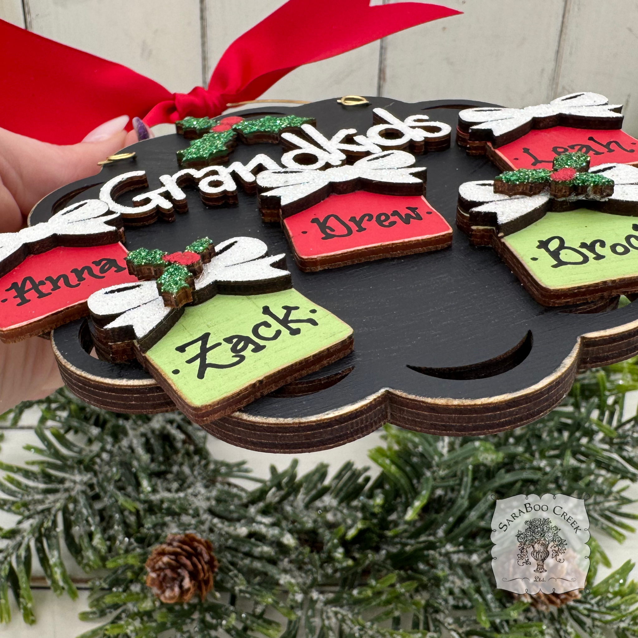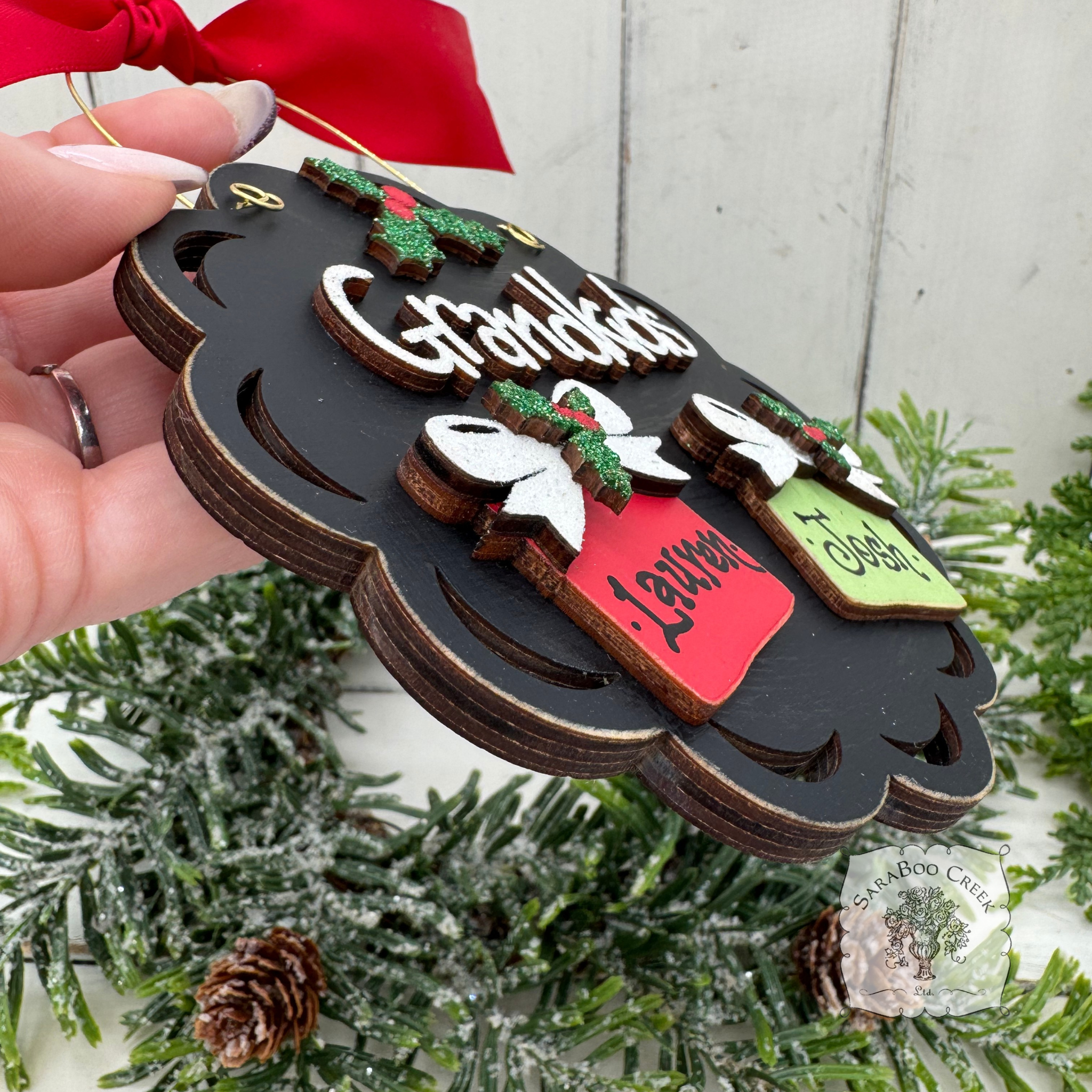 Grandkids Ornament with 2, 3, 4 or 5 Personalized Wood Gifts