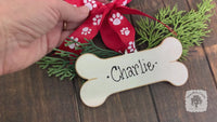 Dog Bone Ornament - Personalized Dog Ornament w/ Paw Print Ribbon