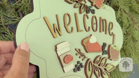 Fall Favorites "Welcome" Sign with Pumpkin Pie, Caramel Apple and Pumpkin Spice Latte