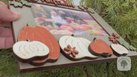 Wood "Autumn" Hanging Picture Frame with Pumpkins and Fall Leaves & Floral - Slip in 3.5" x 5.5" Photo