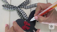 White personalization pops so nicely on our black silhouette Dachshund ornament with it's red glittered bow. Such a cute little Doxie for your Christmas Tree!